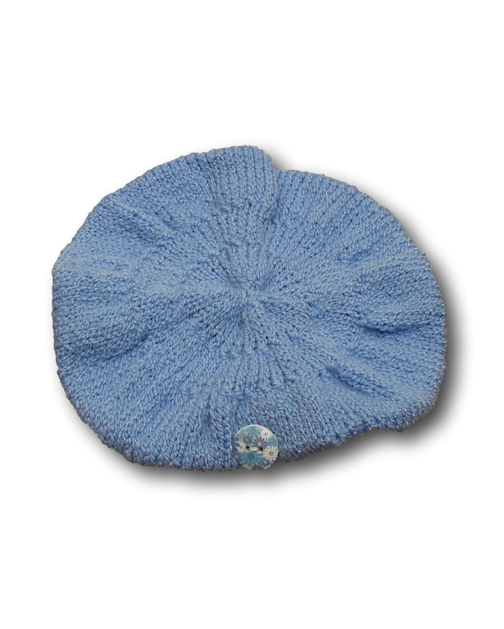 Берет связан вручную по классической схеме из смесовой пряжи. Объемная форма позволяет надевать его разными способами в зависимости от стиля одежды: глубоко на уши или кокетливо на один бочок. Украшением служит нарядная фурнитура или помпон.
