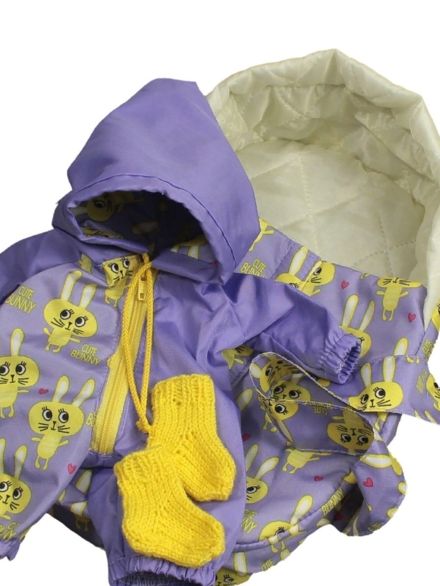 Комплект состоит из трех предметов: люлька-переноска, комбинезон и носки.
