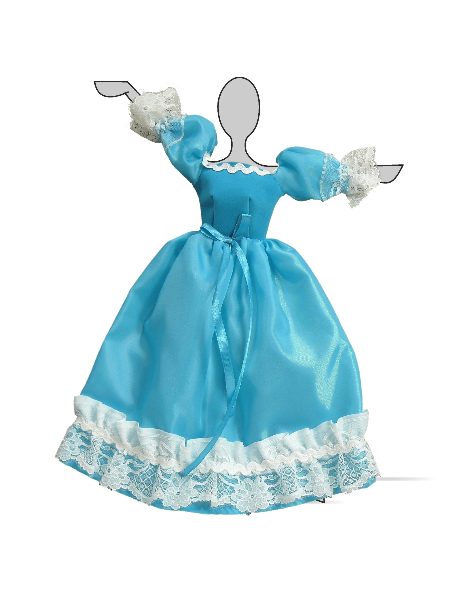 Лиф выполненный из замши и украшенный декоративной тесьмой имеет застежку сзади на контактную ленту. Юбка - из шелка украшена декоративными лентами и кружевом.