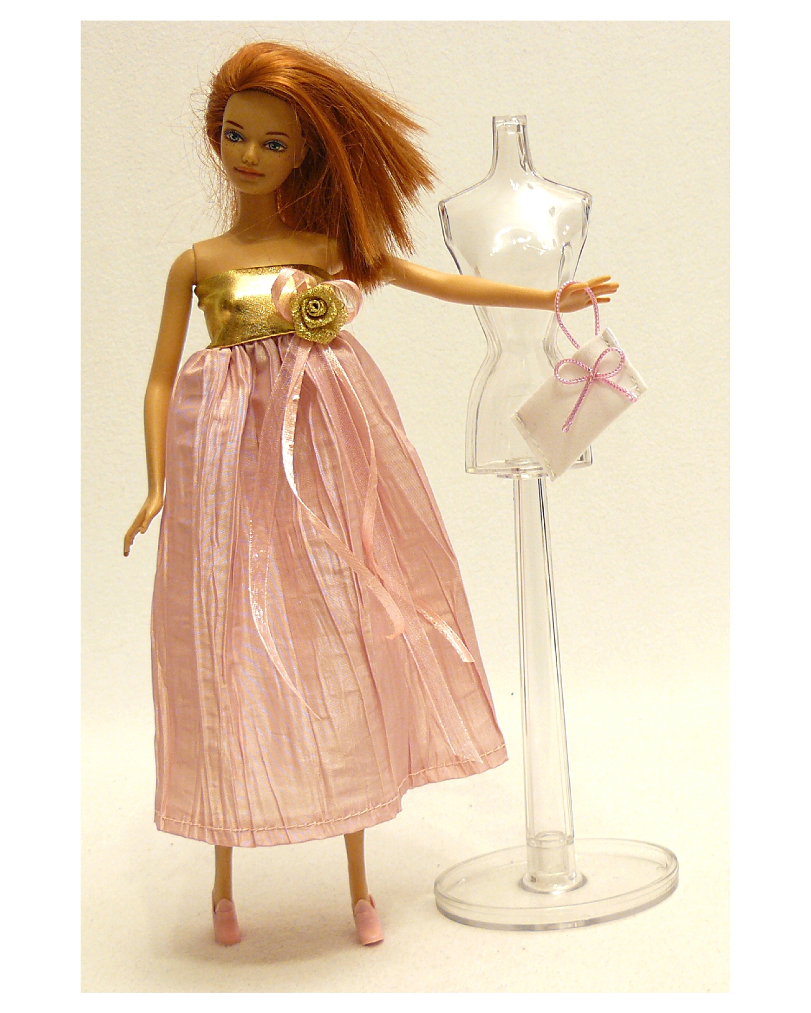 Комплект состоит из трех предметов: платье, накидка и сумочка.