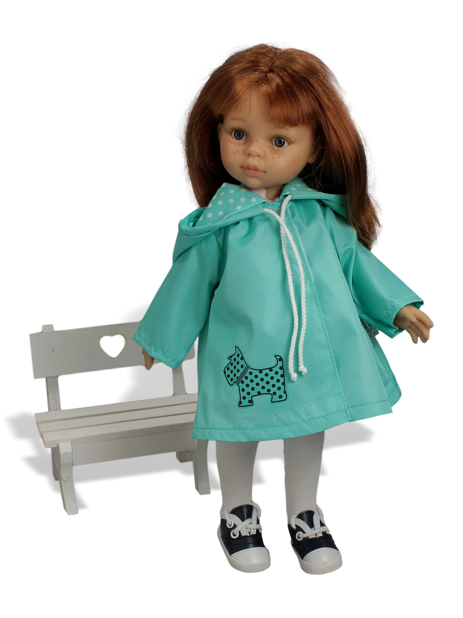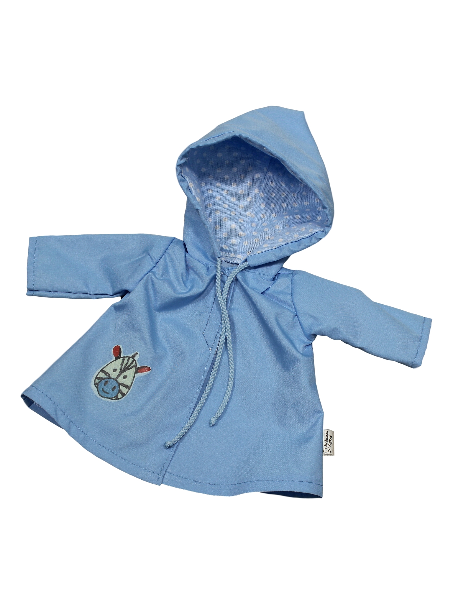 Плащ с капюшоном из плащевой ткани. В капюшон продернут шнур-утяжка с пластиковыми наконечниками. Застежка - лента велкро. На полочке переда плаща размещена термотрансферная аппликация.