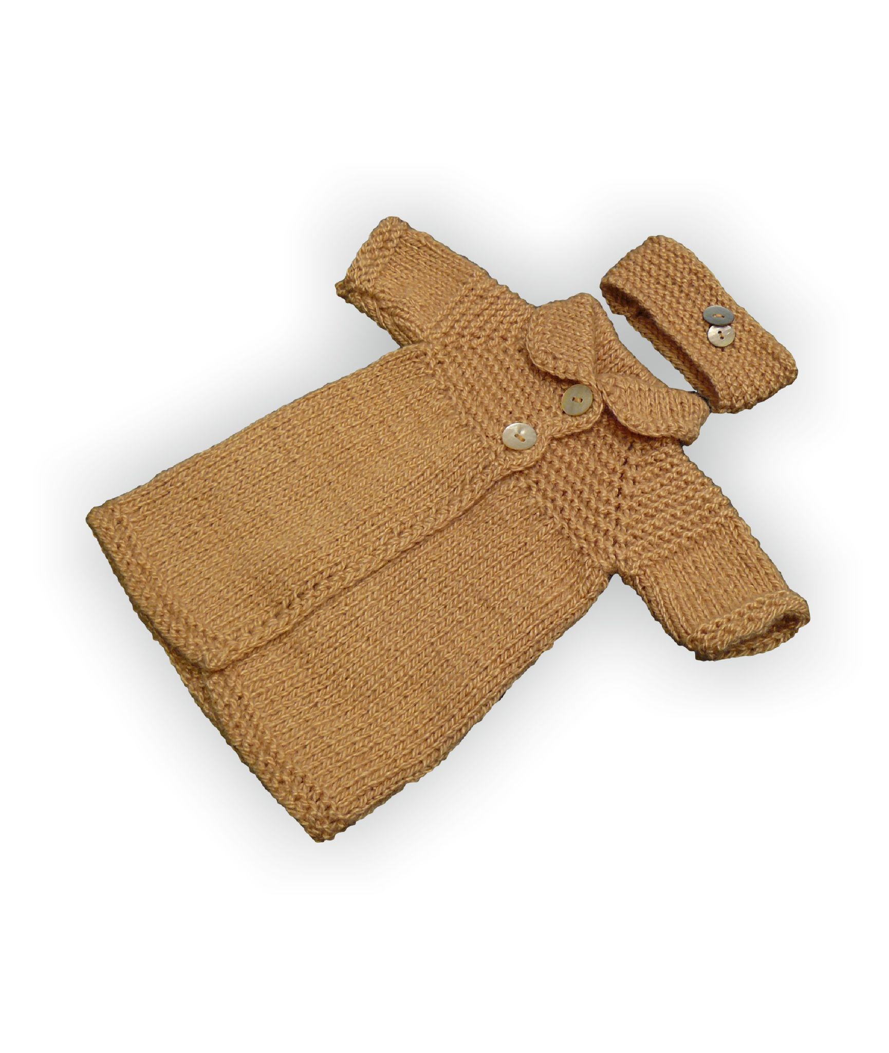 Пальто связано вручную из пряжи натуральных и нежных тонов.