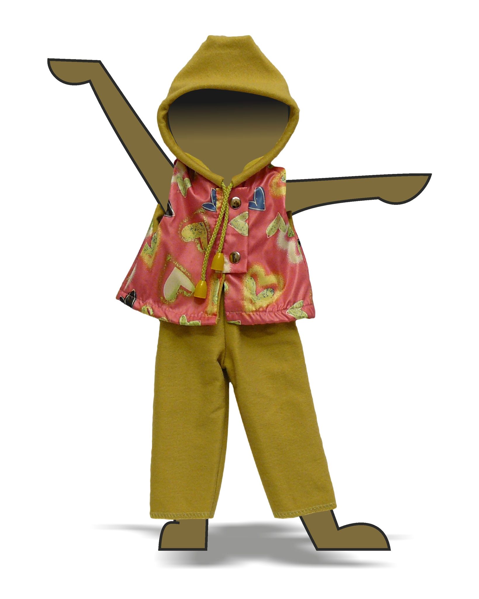 Комплект состоит из двух предметов: жилет с капюшоном и брючки.