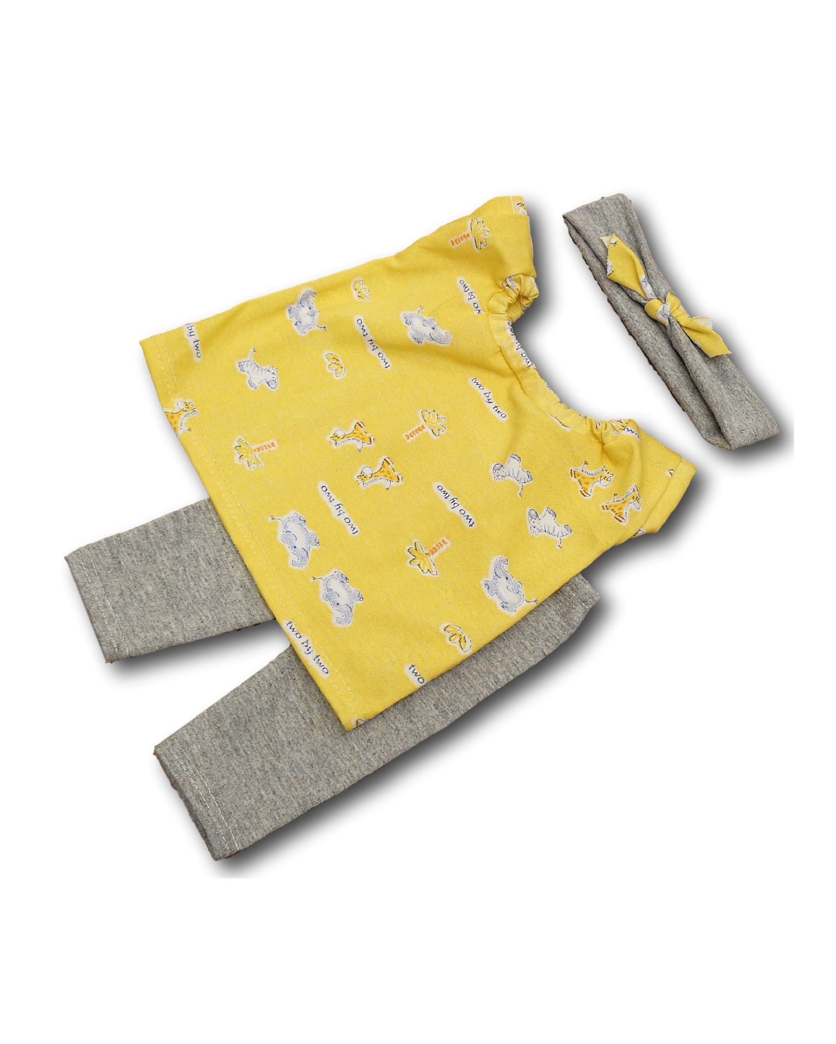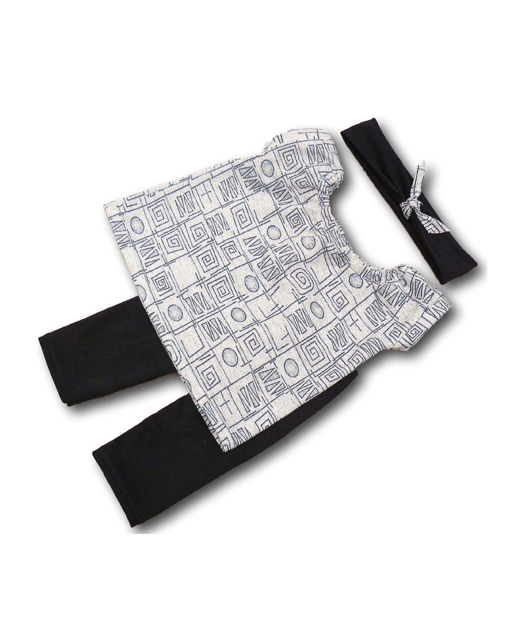 Комплект состоит из трех предметов: туника, штаны и полоска на голову.