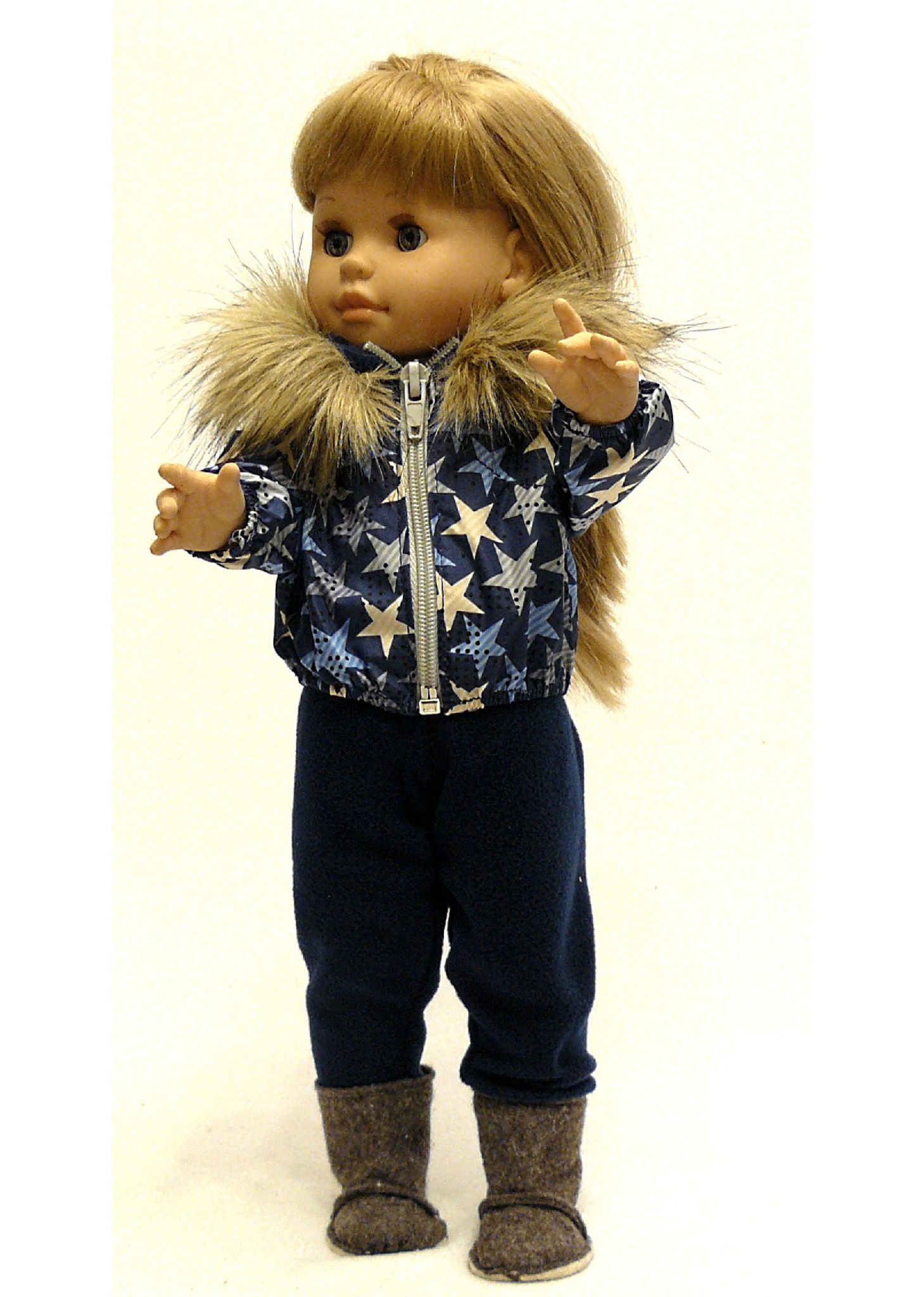 Куртка с капюшоном изготовлена из принтованой плащевой ткани с водоотталкивающим покрытием с капюшоном, отороченным искусственным мехом. Подкладка - из флиса. Впереди застежка из разъемной молнии. Крой куртки выполнен так, что позволяет свободно одевать его на нижнюю одежду.