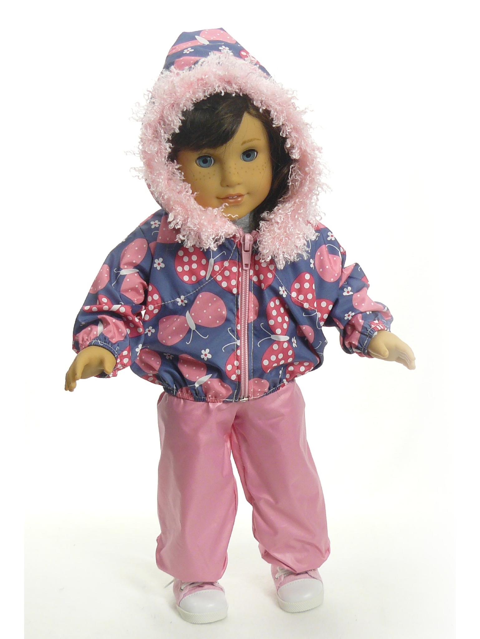 Куртка с капюшоном изготовлена из принтованой плащевой ткани с водоотталкивающим покрытием с капюшоном, отороченным искусственным мехом. Подкладка - из хлопковой ткани. Впереди застежка из разъемной молнии. Крой куртки выполнен так, что позволяет свободно одевать его на нижнюю одежду.