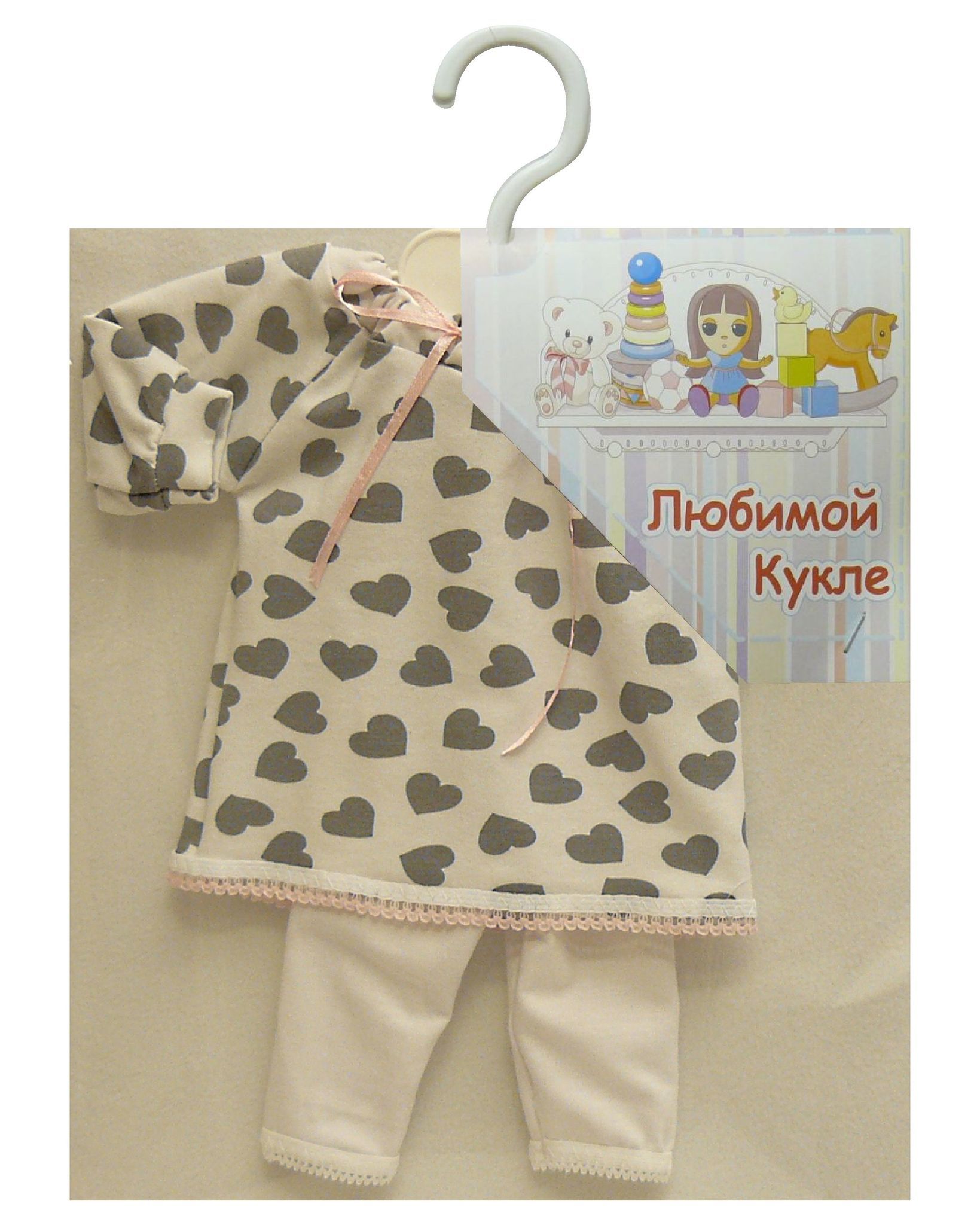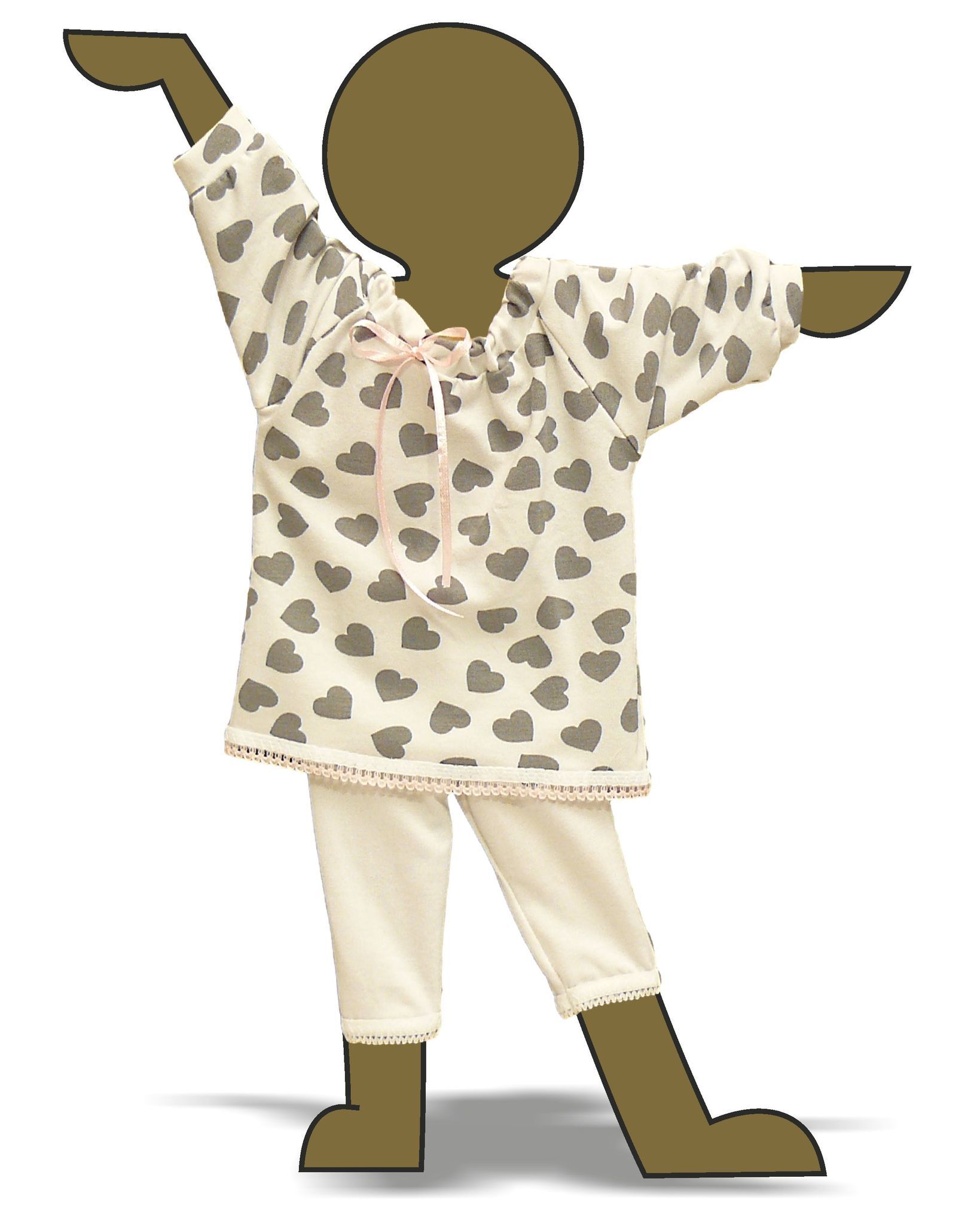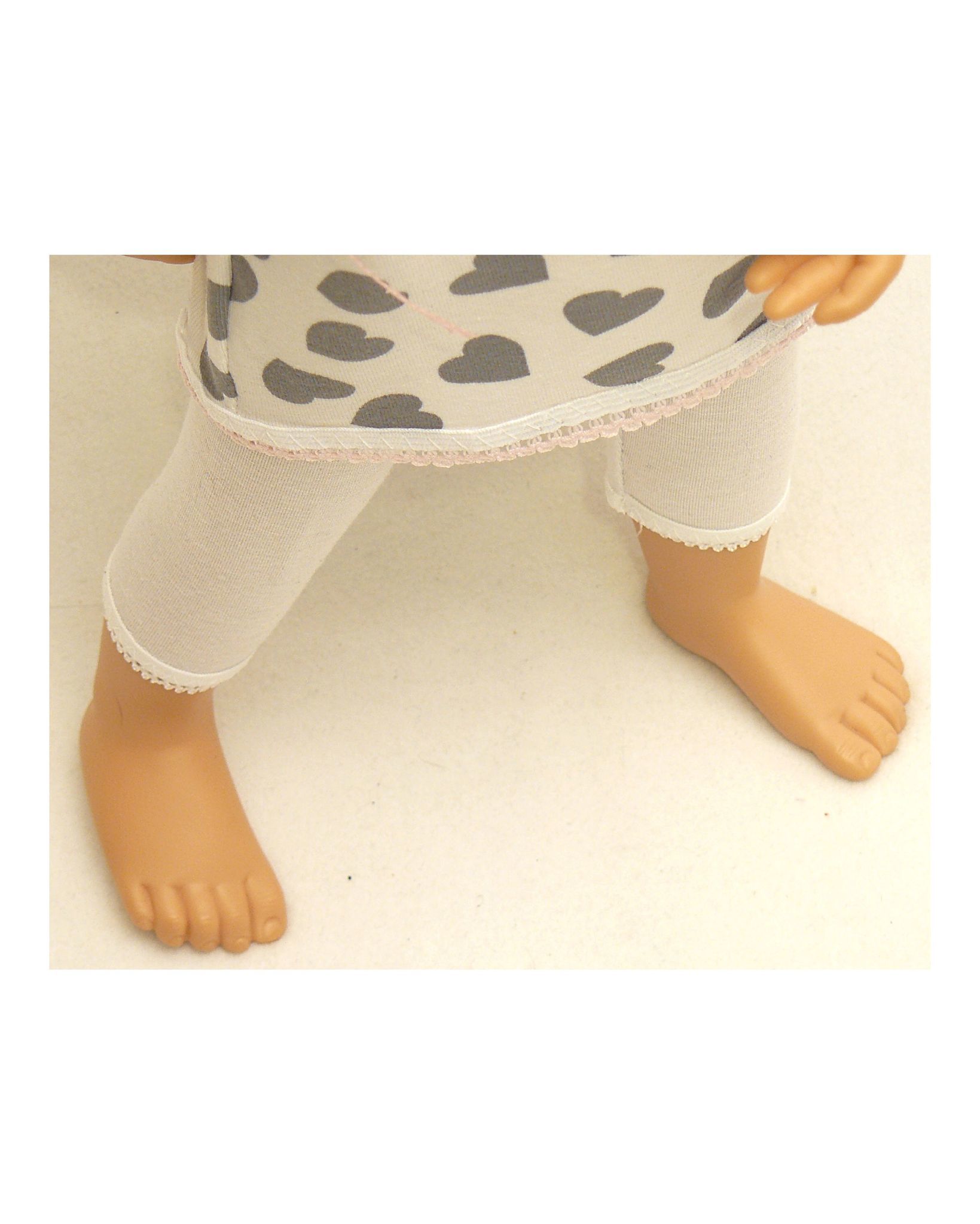 Укороченные шпанишки-леггинсы изготовлены из трикотажного полотна , что обеспечивает хорошую посадку. Благодаря свободному покрою и эластичности пижама хорошо садится на кукол и пупсов различных пропорций.