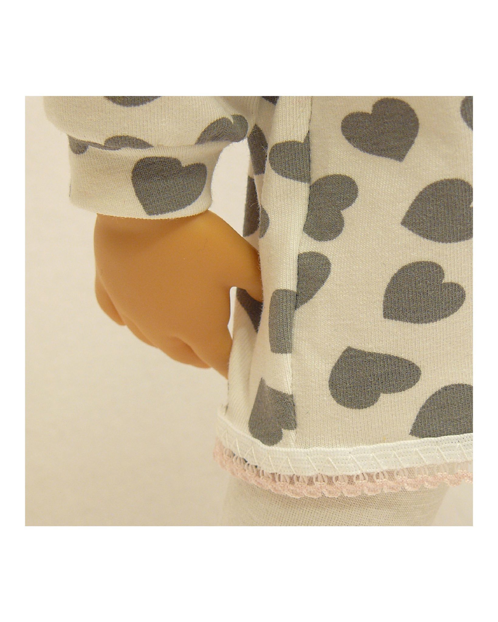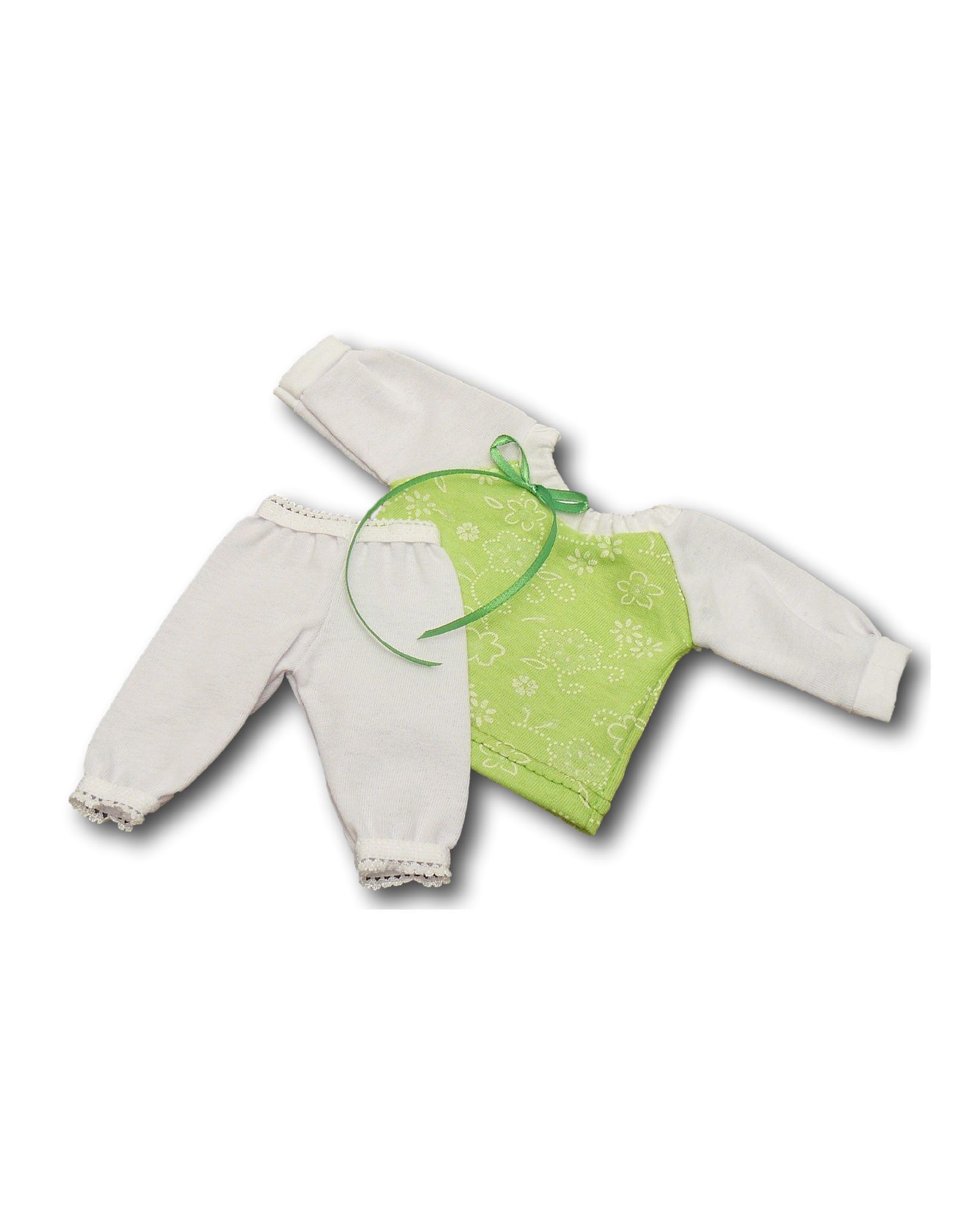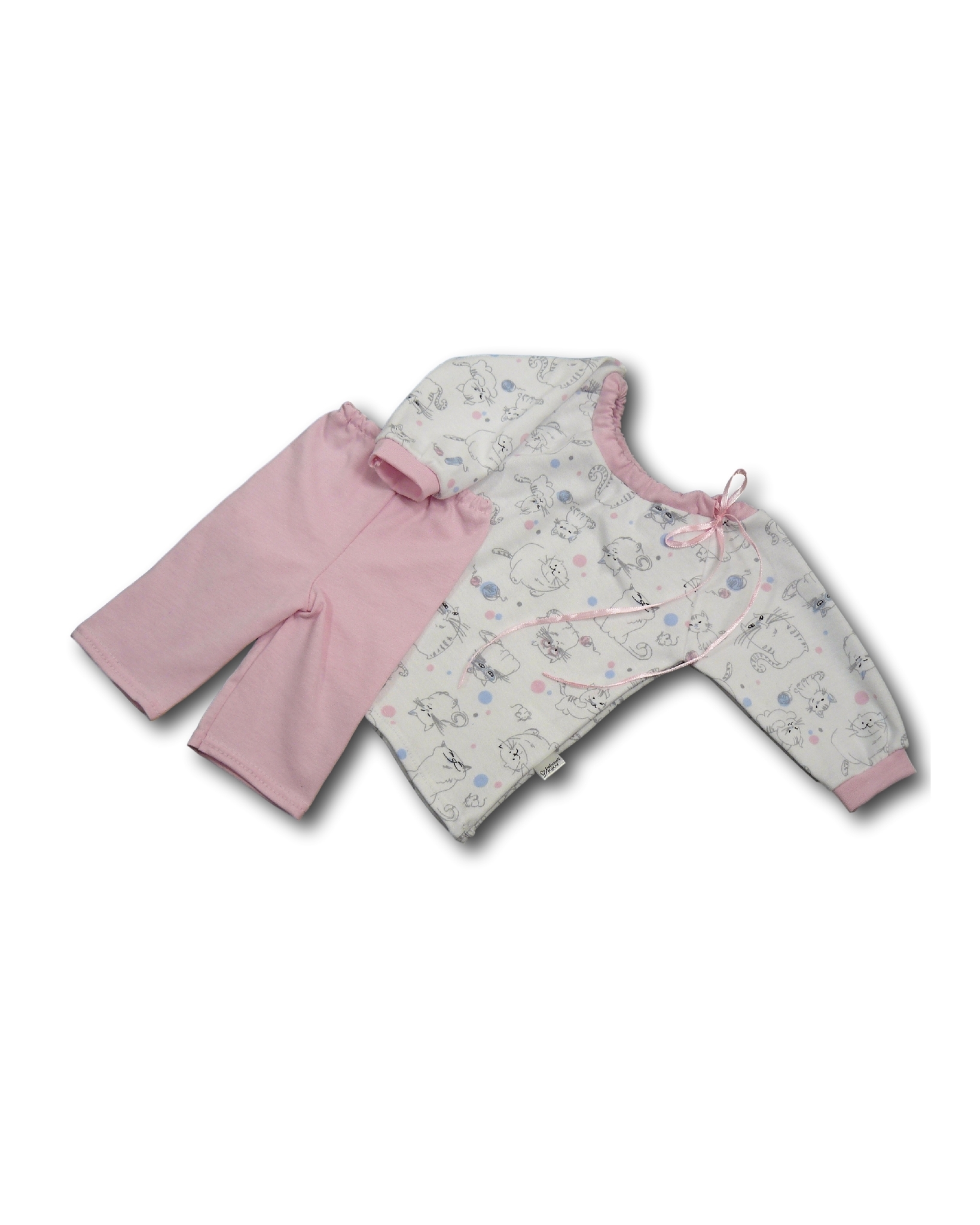 Укороченные шпанишки-леггинсы изготовлены из трикотажного полотна , что обеспечивает хорошую посадку. Благодаря свободному покрою и эластичности пижама хорошо садится на кукол и пупсов различных пропорций.
