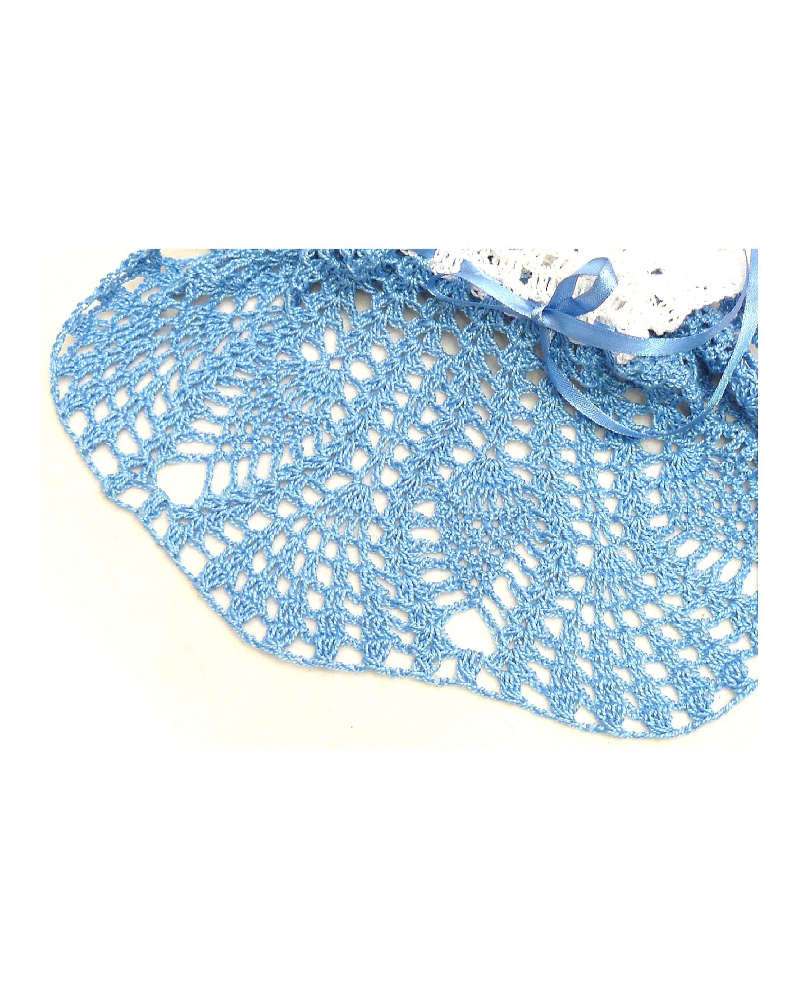 Великолепное воздушное летнее платье, связанное крючком. На юбке искусно вывязан ажурный рисунок. Элегантное двухцветное сочетание лифа и юбки, подчеркнуто шелковой лентой, с помощью которой можно корректировать объем. застежка - две пуговицы сзади. Эластичная полоска дополняет комплект.