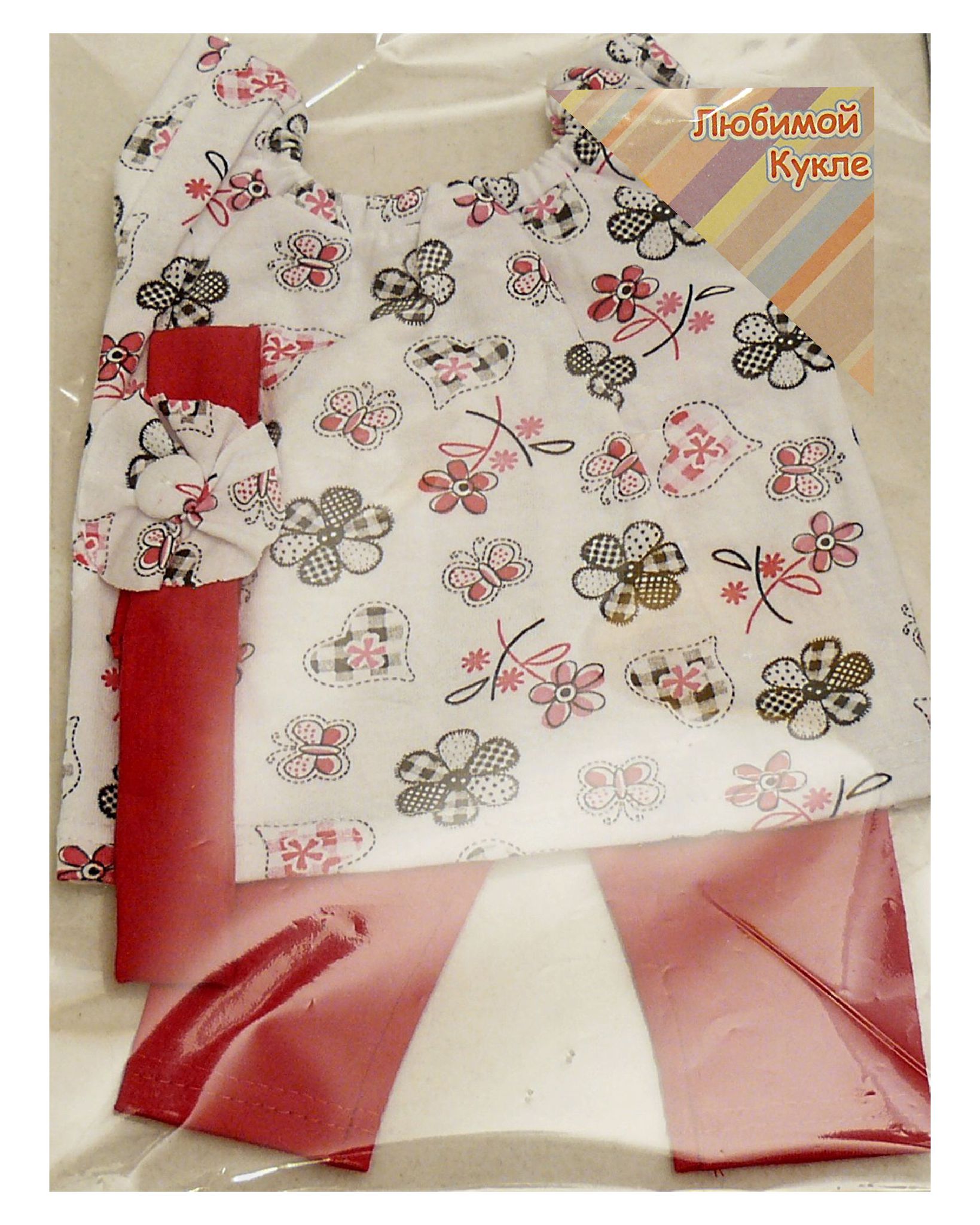 Туника, расклешенного силуэта, выполнена из х/б трикотажного полотна. Оригинальный крой с цельнокройными рукавами и широкой горловиной позволяет легко одевать изделие без дополнительной застежки. Для плотного облегания в обтачку горловины вставлена тонкая резинка. Штаны в виде лосин из трикотажа - компаньона яркого цвета. Из него же изготовлена полоска на голову с украшением ручной работы.