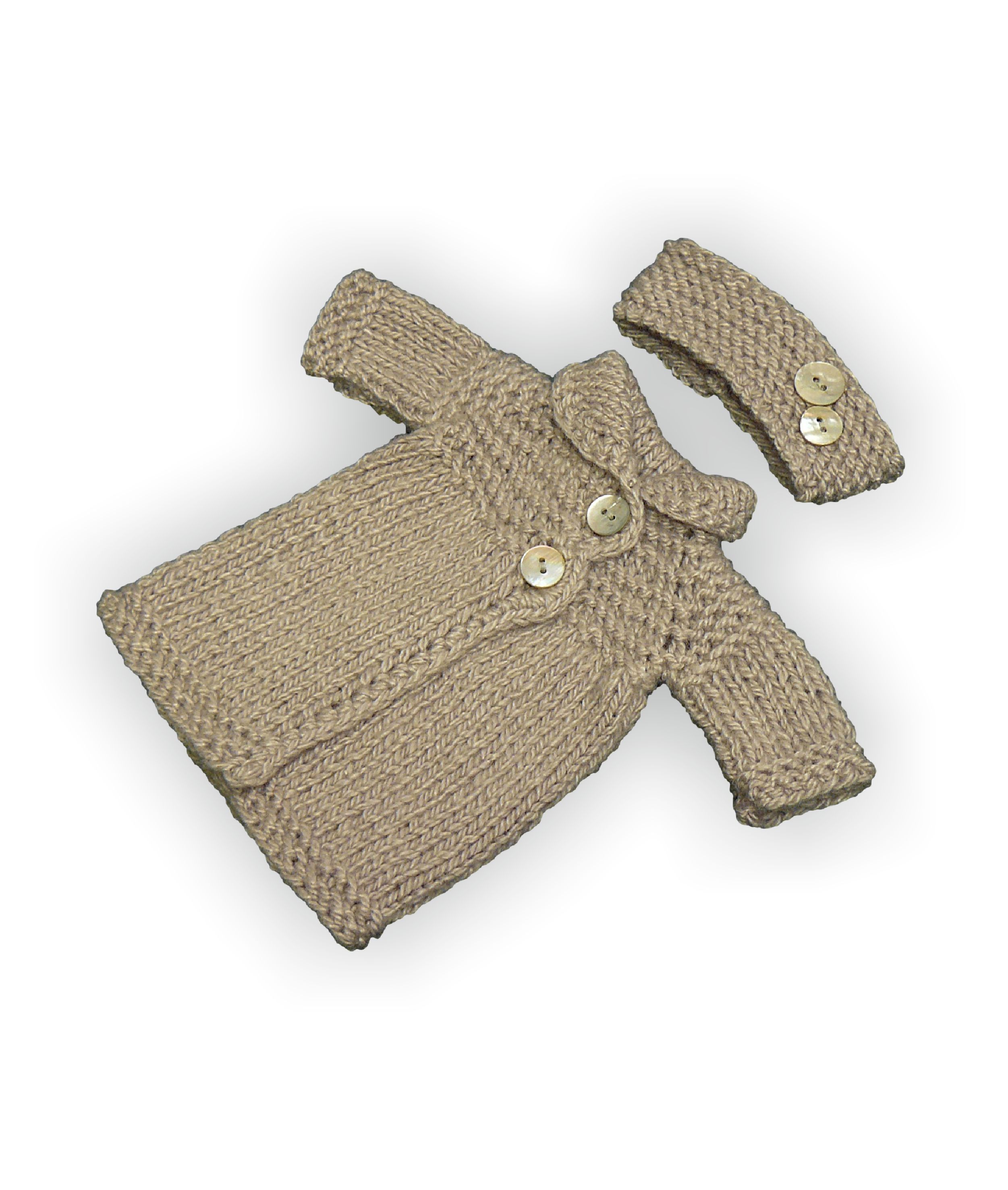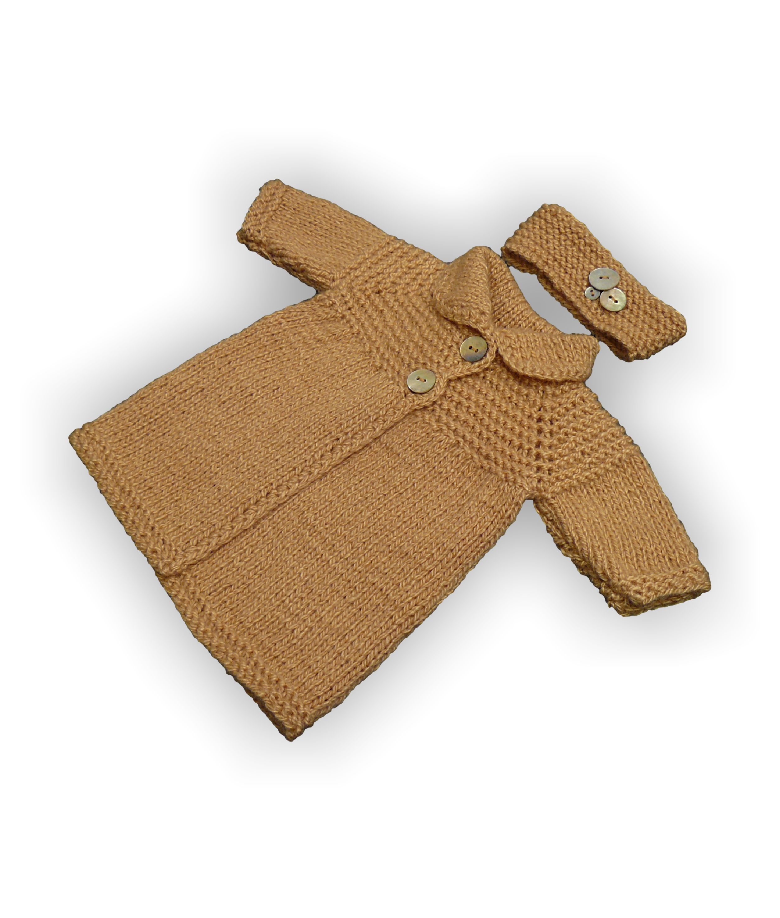 Пальто связано вручную из пряжи натуральных и нежных тонов.