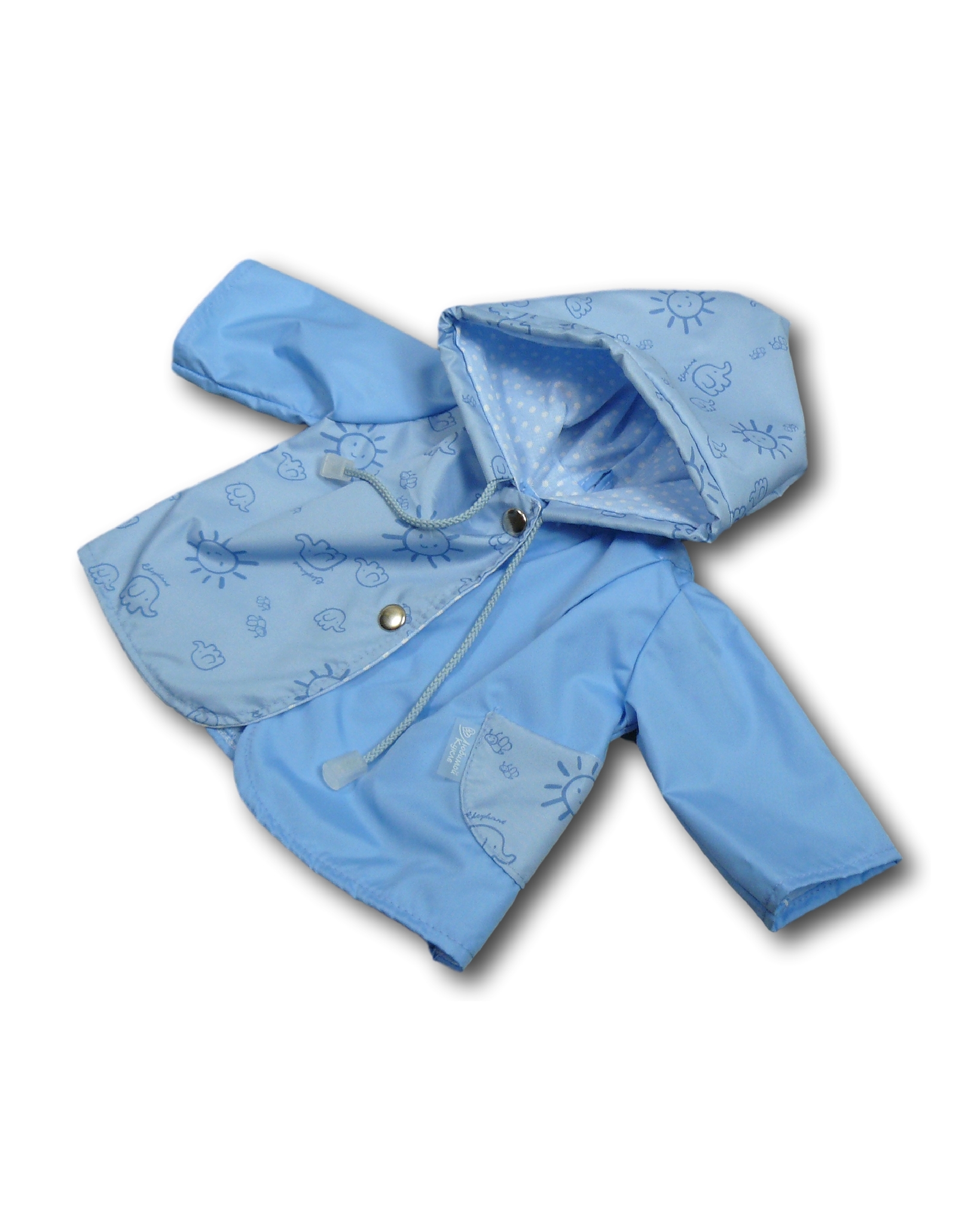 Плащ с капюшоном скомбинирован из двух плащевых тканей: с оригинальным принтом и однотонной. Плащ на подкладке из хлопчатобумажой ткани. Изящный карман позволяет прятать туда мелкие вещи. Застежка на двух кнопках развивает мелкую моторику рук и прививает полезные навыки.