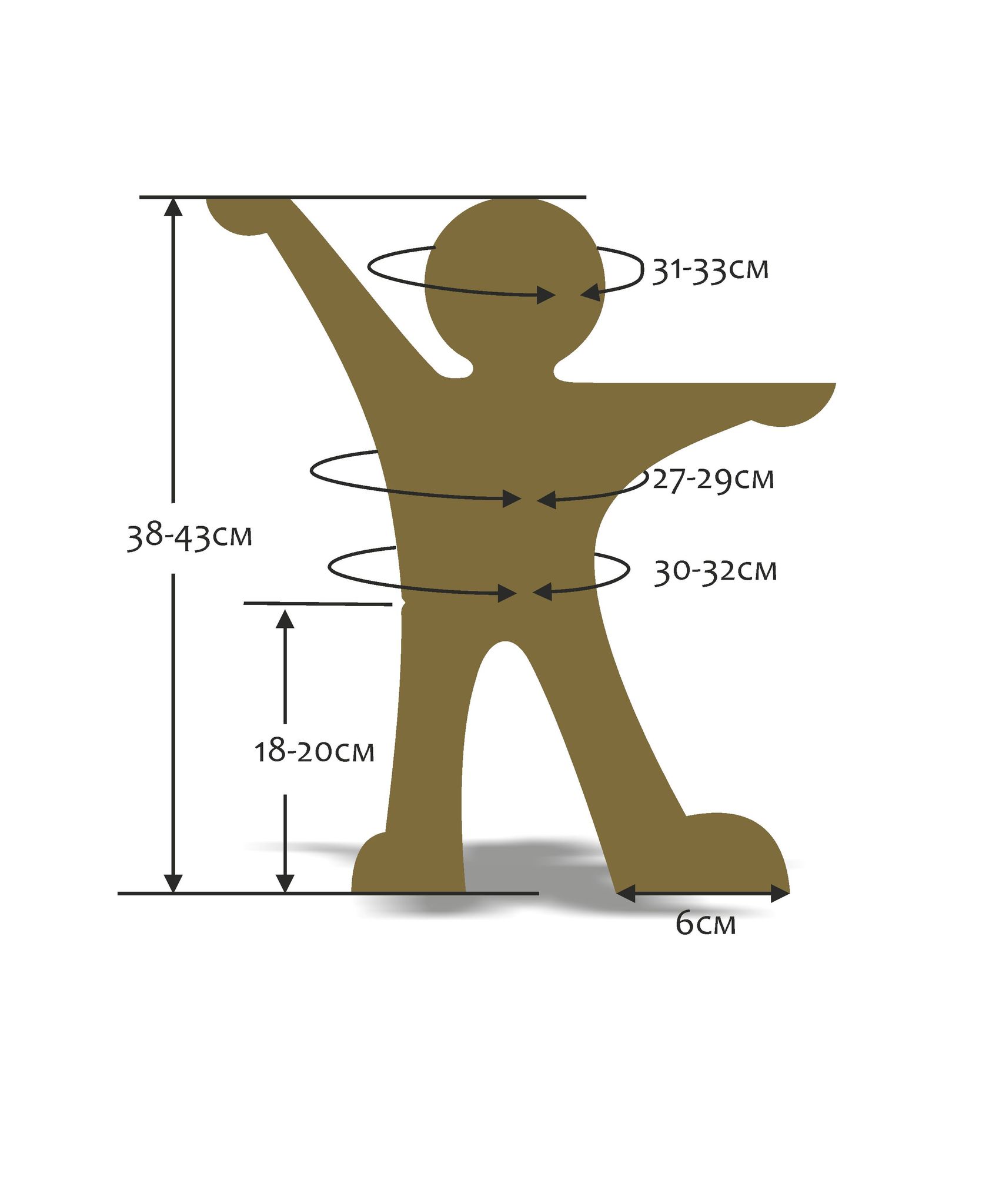 Ориентировочные параметры наших моделей для размерной группы 38-43 см: