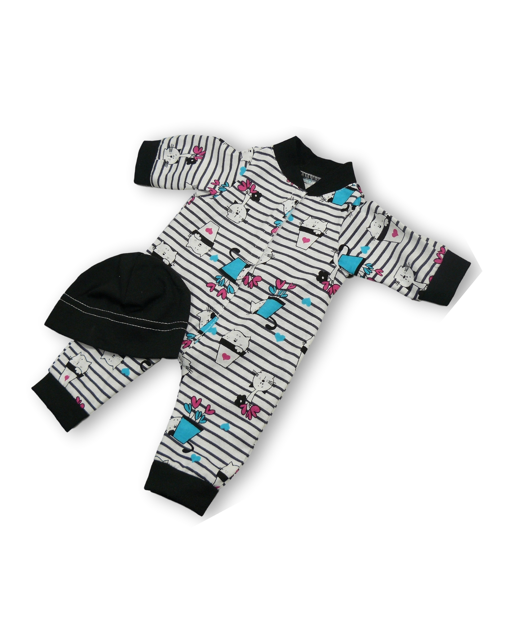 Малышковый слип изготовлен из тонкого трикотажного полотна с детским рисунком. Воротник и обтачки рукавов и штанин, а так же шапочка выполнены из однотонного трикотажа дополняющего цвета. Глубокая застежка спереди с микролипучкой обеспечивает комфортную эксплуатацию изделия. Украшением служат декоративные пуговицы.