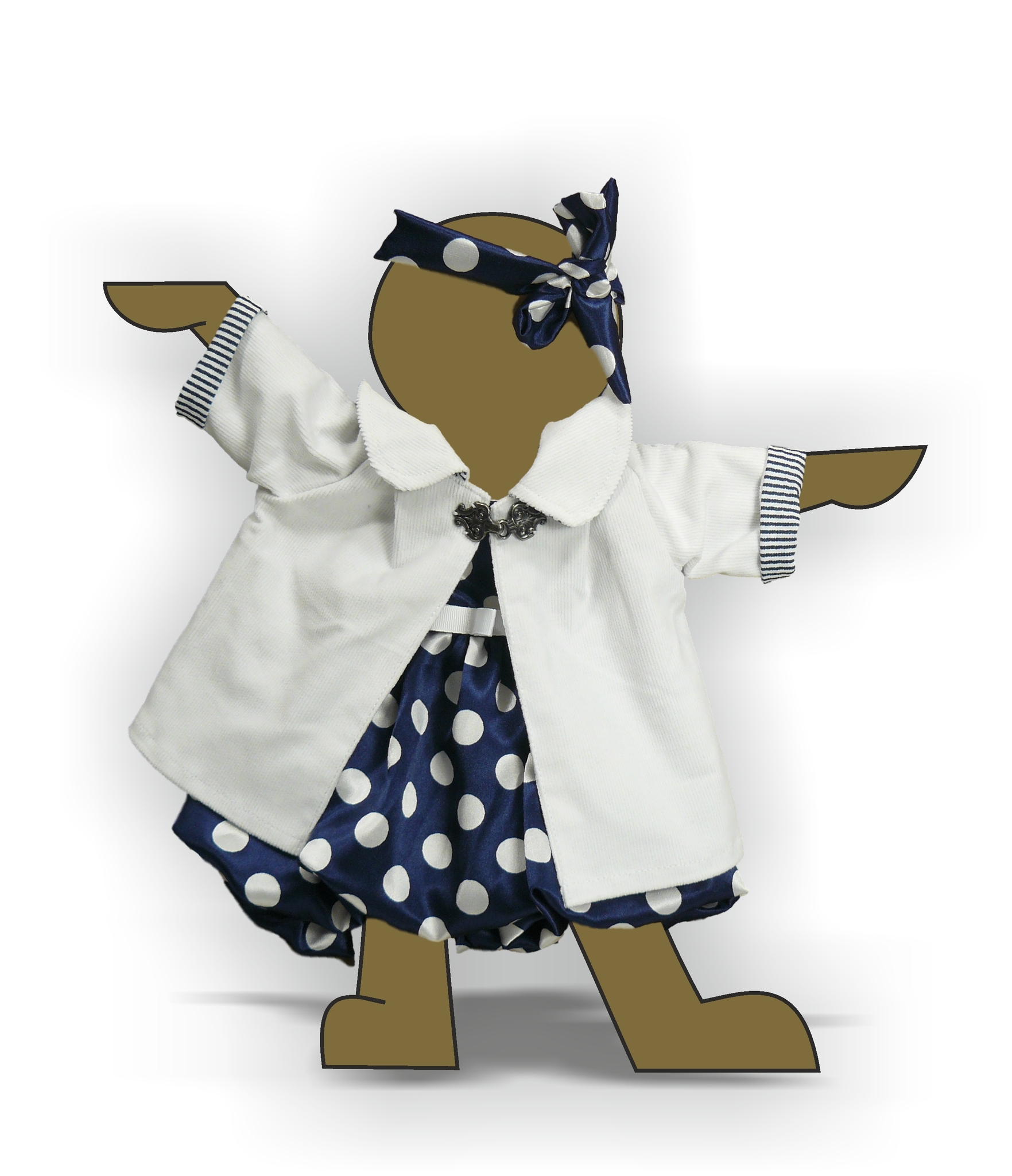 Комплект состоит из трех предметов: пальто, платье и полоска на голову.