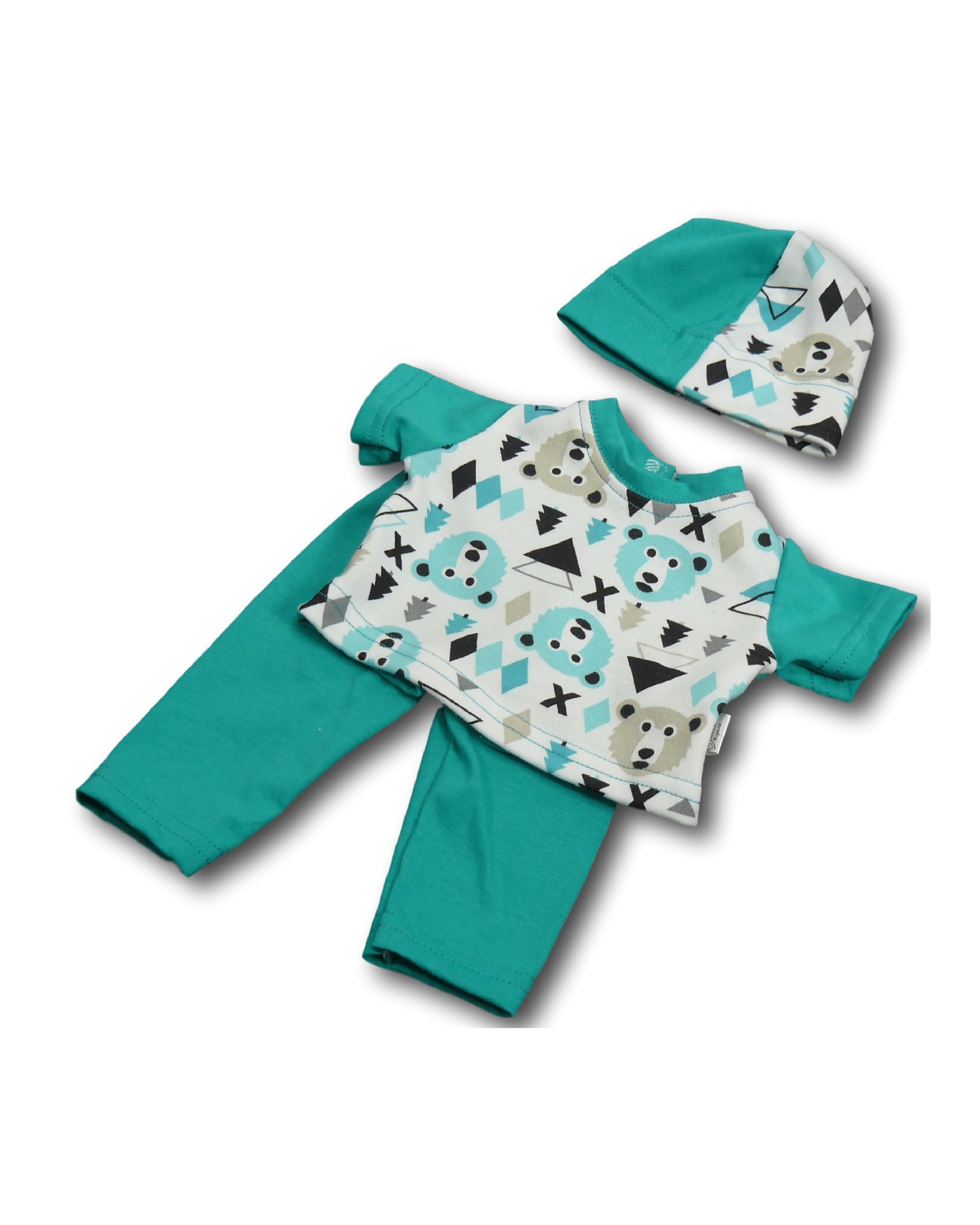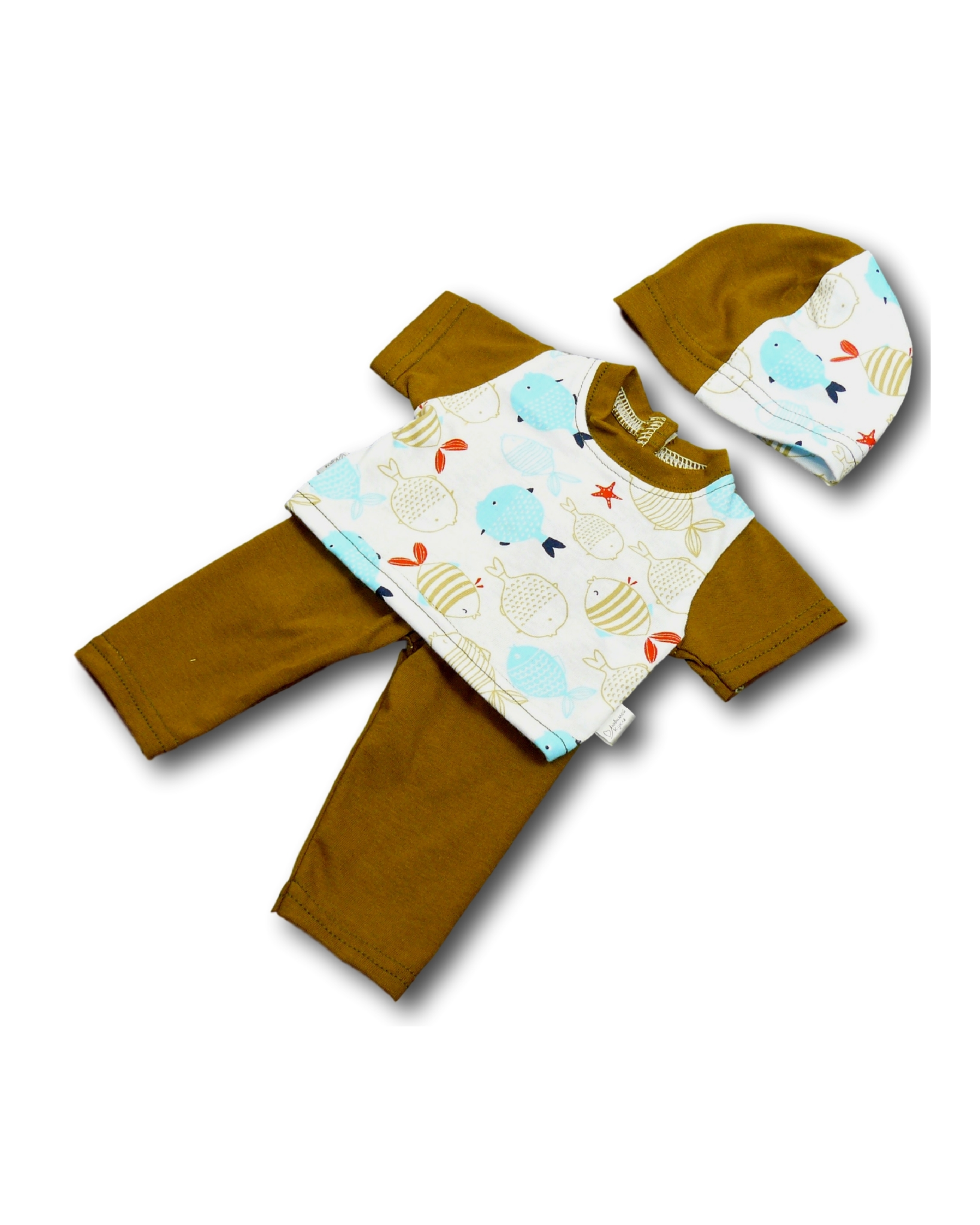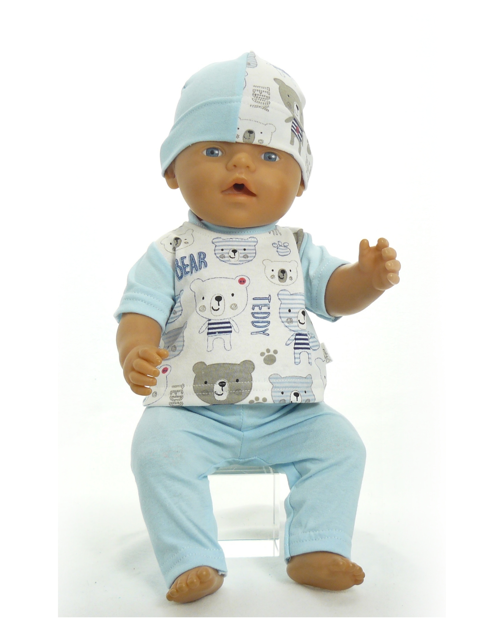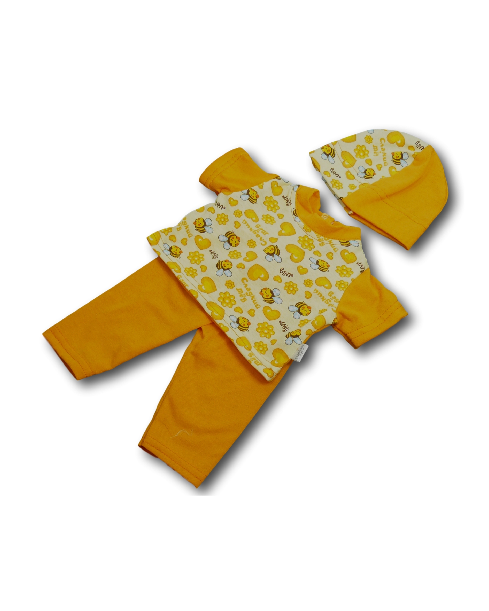 Комплект состоит из трех предметов: футболка, штаны и шапка.