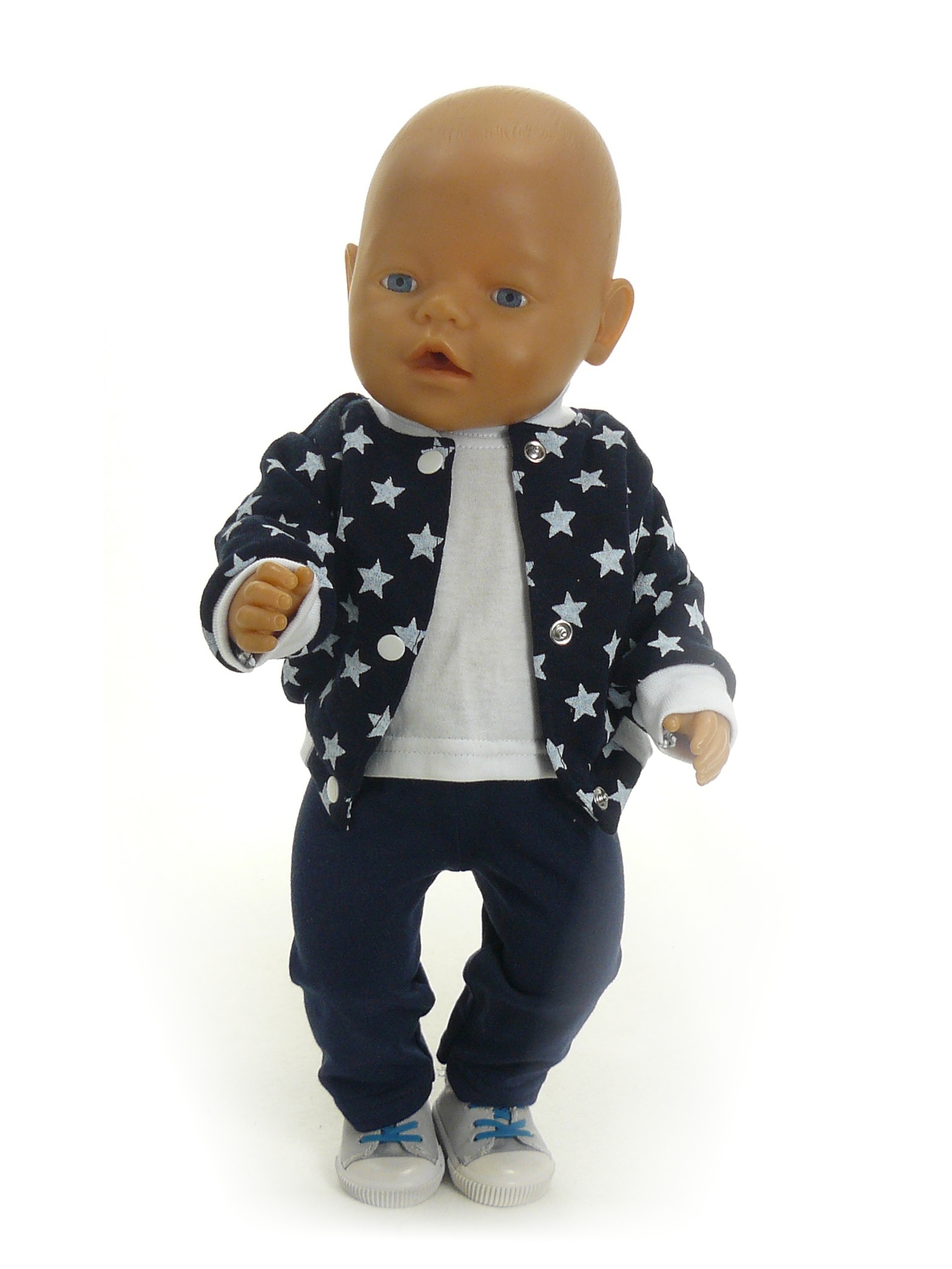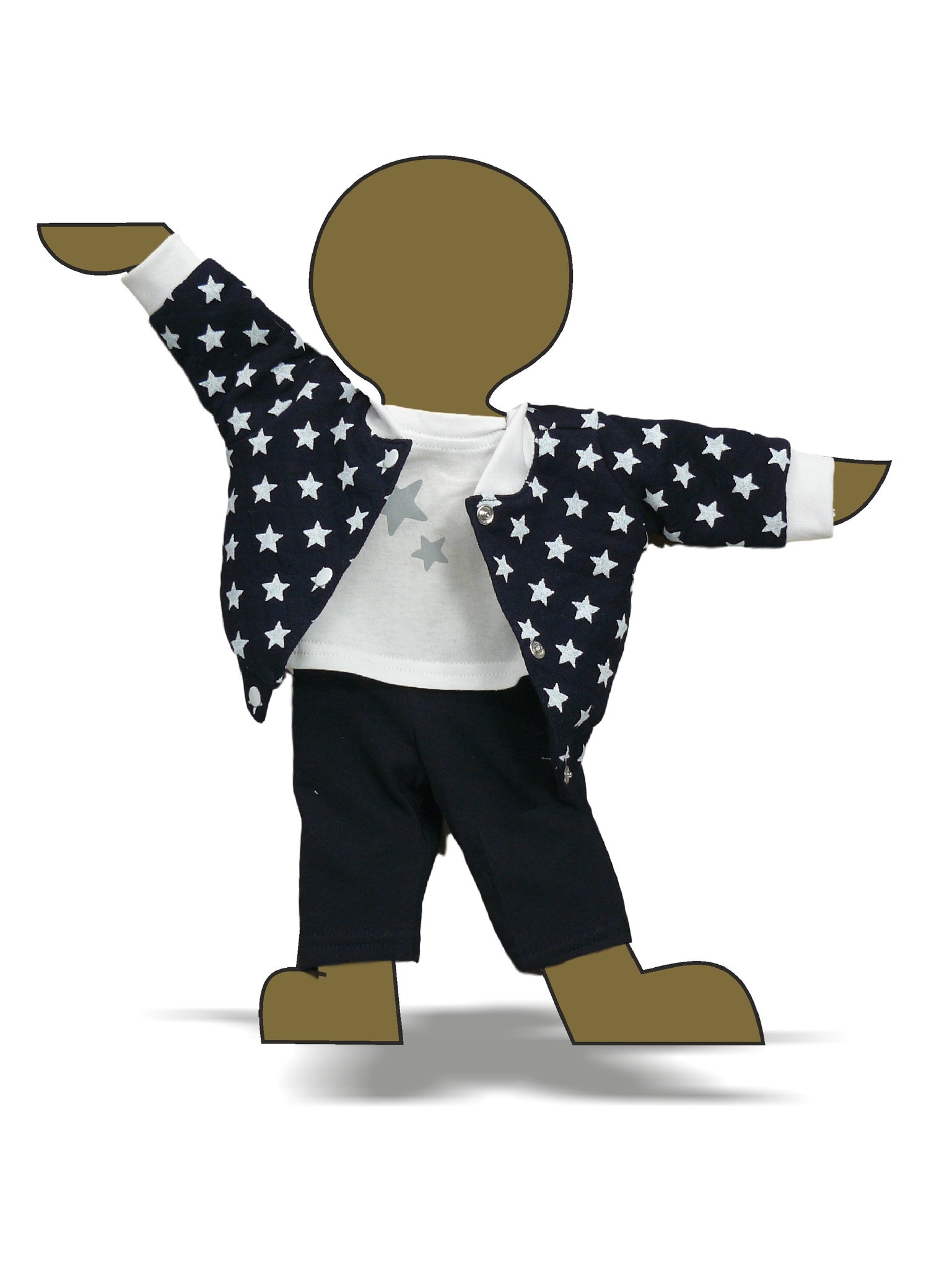 Комплект состоит из трех предметов: футболка, куртка, рейтузы. Комплект выполнен в единой цветовой гамме. Все изделия прекрасно сочетаются между собой. Футболка изготовлена из тонкого трикотажного полотна. На футболке застежка - липучка сзади. Футболка украшена светоотражающей термоаппликацией. Трикотажные штаны на резинке. Куртка - бомбер из х/б трикотажного капитоне с набивным рисунком. Застежка - кнопки с декоративными головками.