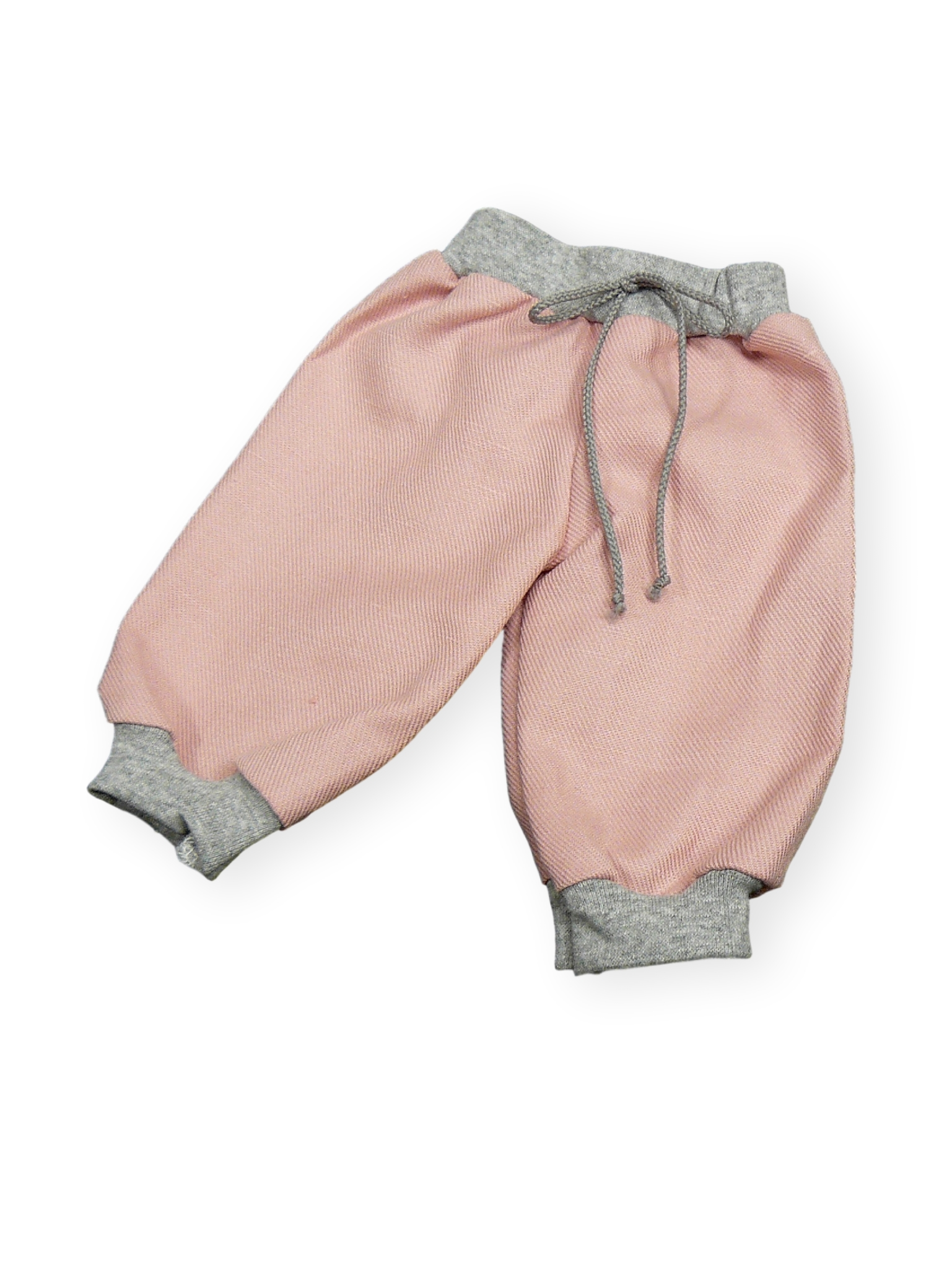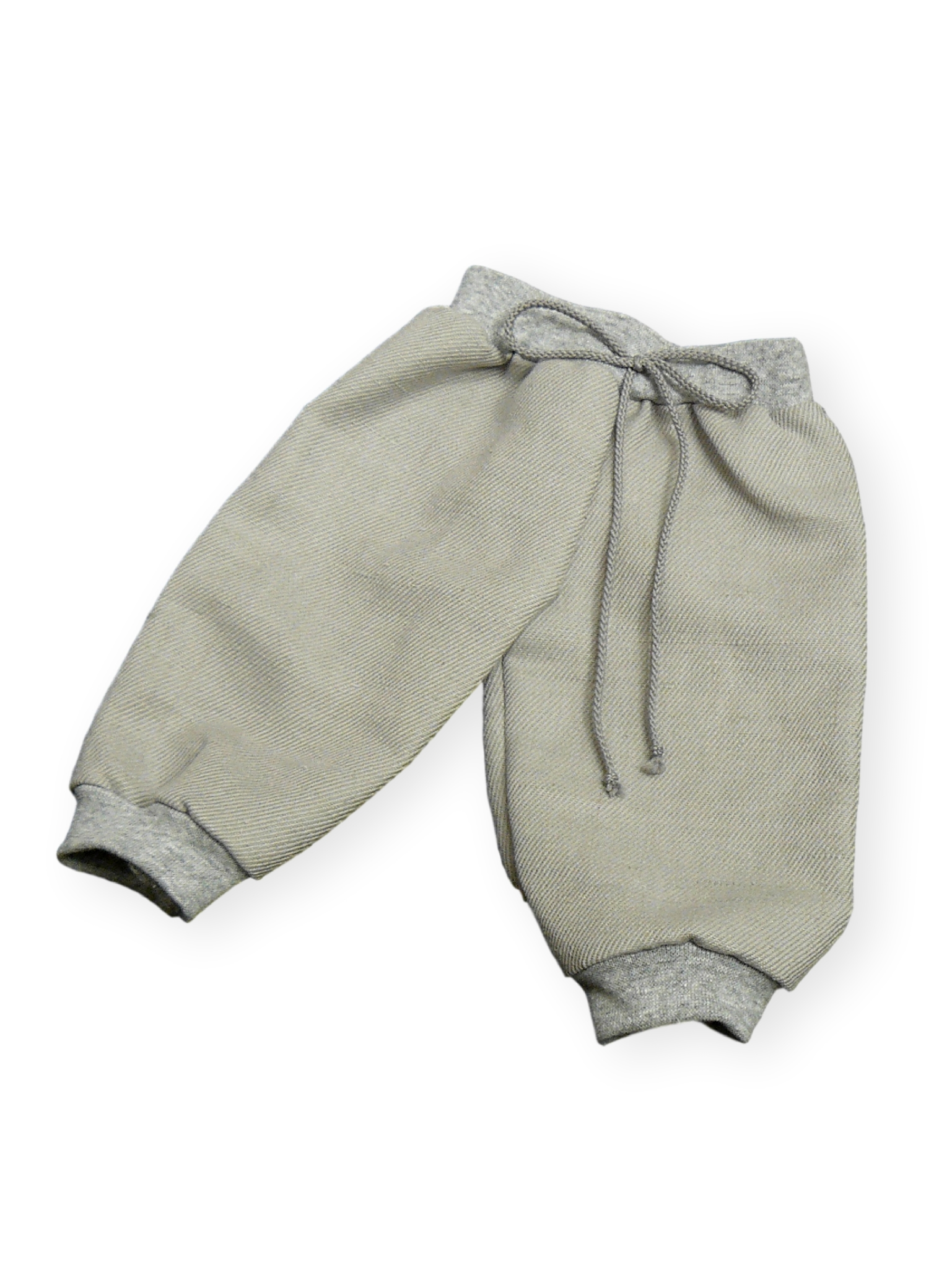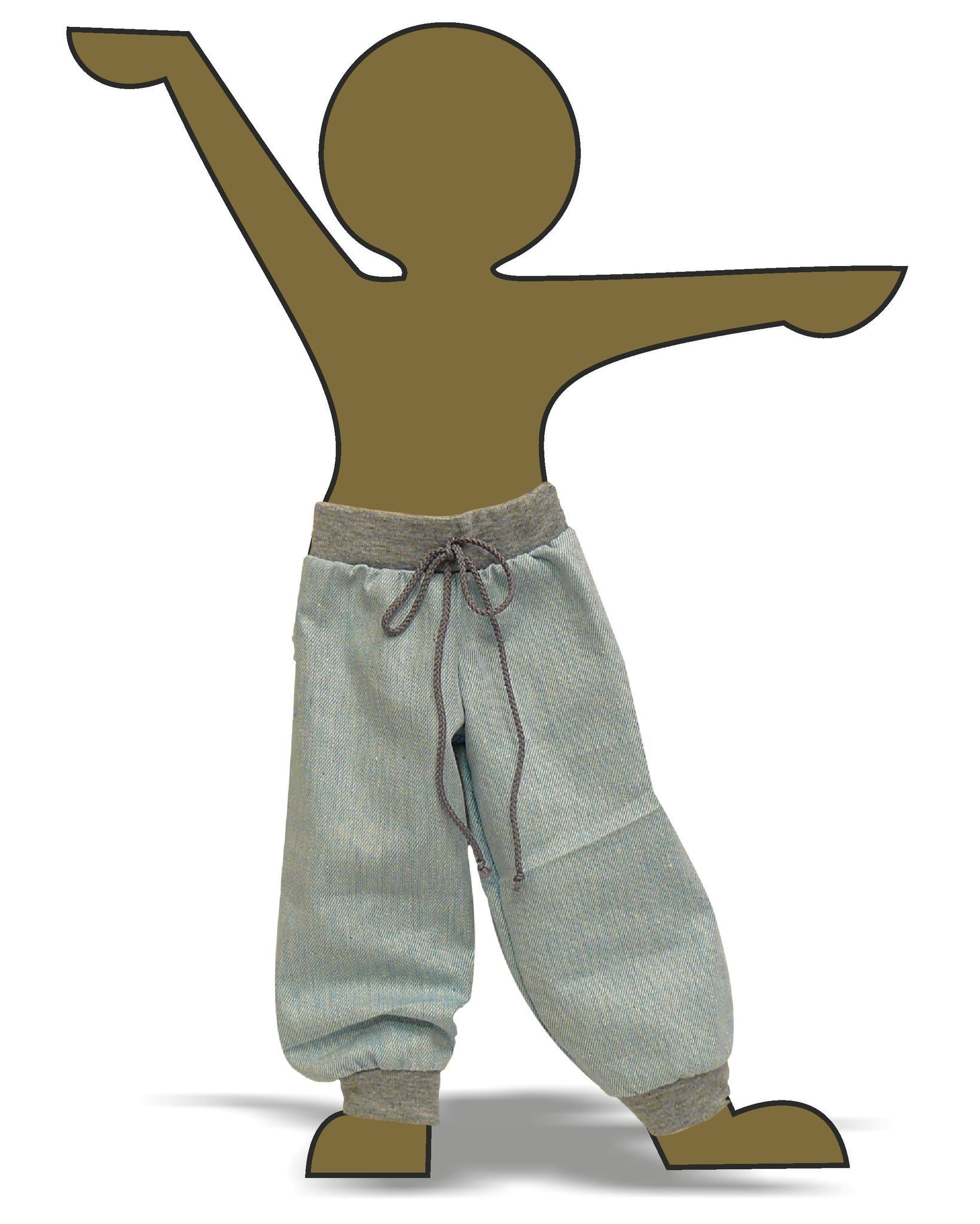 Брюки свободного покроя изготовлены из хлопчатобумажной ткани, имитирующую джинсовую. Пояс и манжеты брюк выполнены из плотного трикотажа - резинки - рибана. Пояс усилен широкой резинкой и украшен декоративным шнуром . Эти брюки отлично подойдут для формирования гардероба домашней одежды и одежды для прогулок.