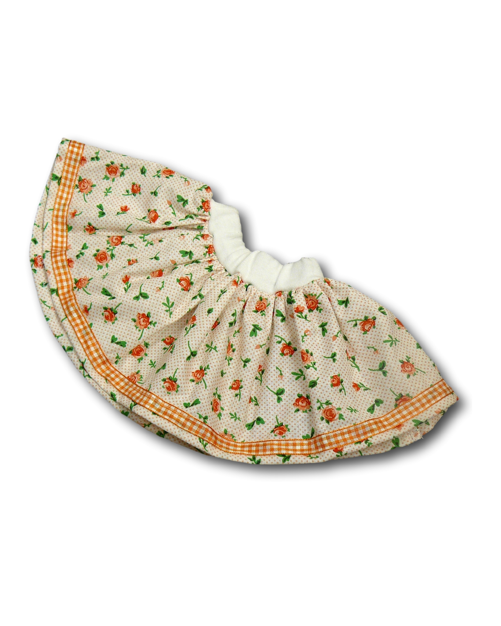 Юбка изготовлена из смесовой ткани ярких расцветок. Полотно юбки собрано на густую сборку, что создаёт дополнительный объём. Пояс рибаны усилен резинкой, что обеспечивает хорошую посадку на фигуре.Украшением служит декоративная лента по подолу. Юбка является необходимым предметом гардероба и может использоваться для составления различных комплектов одежды.