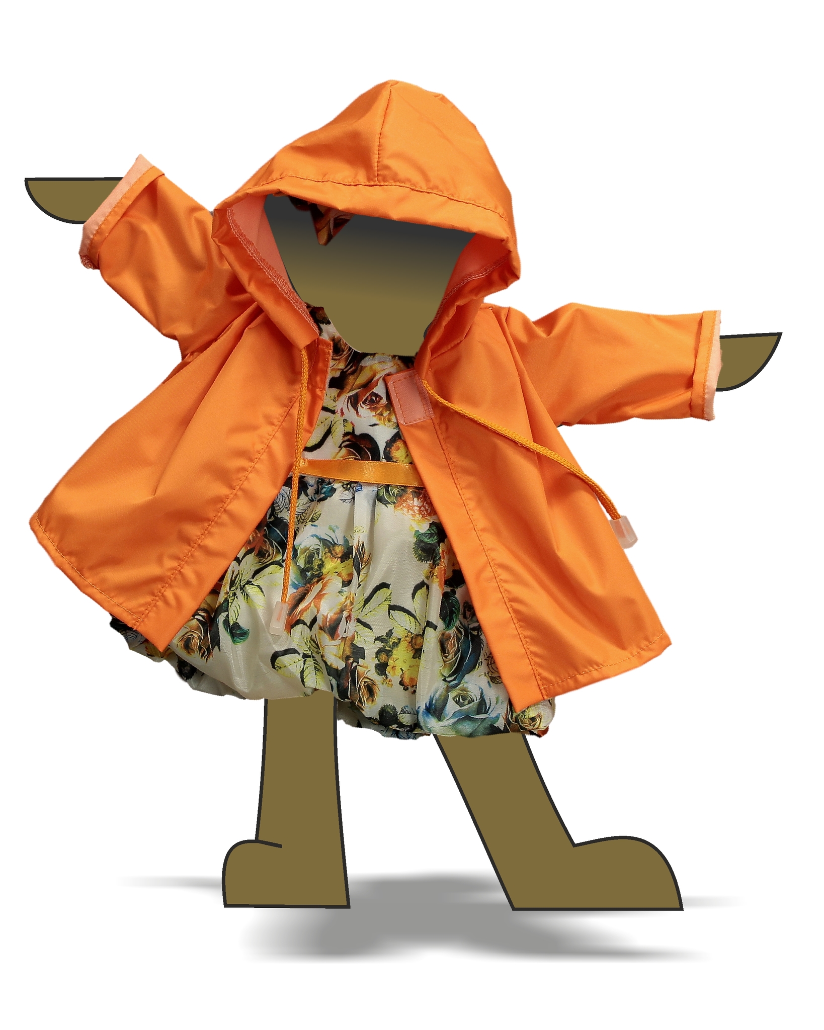 Плащ расклешенного силуэта на подкладе выполнен из водонепроницаемой однотонной плащевой ткани. Застежкой на плаще служат две декоративные кнопки. В комплекте с плащем прекрасно смотрится хлопчато-бумажное платье без рукавов с декоративной тесьмой Застежка - контактная лента "велкро" (липучка). Оба изделия могут использоваться по отдельности для создания других комплектов одежды.