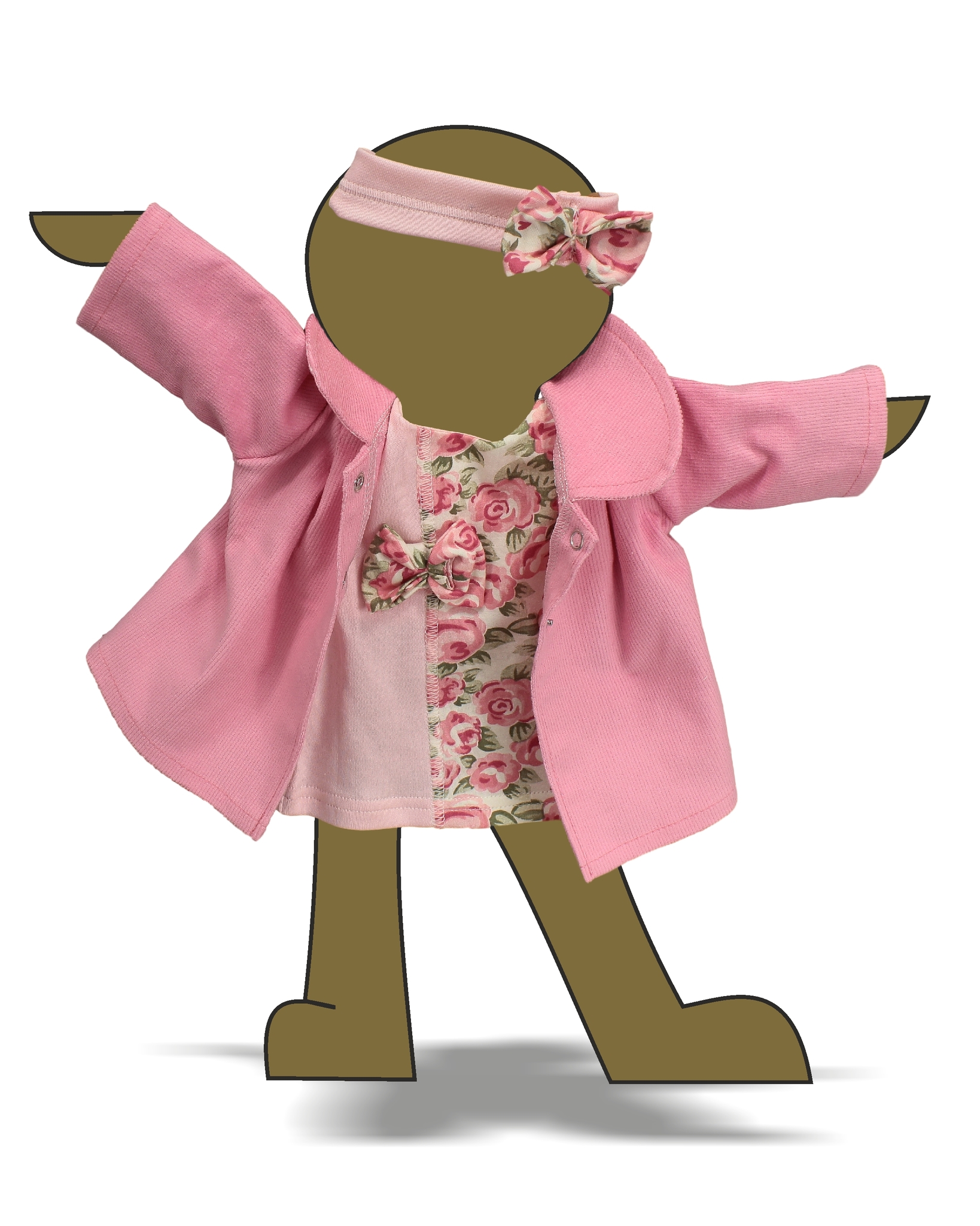 Комплект состоит из трех предметов: пальто, платье и полоска на голову.