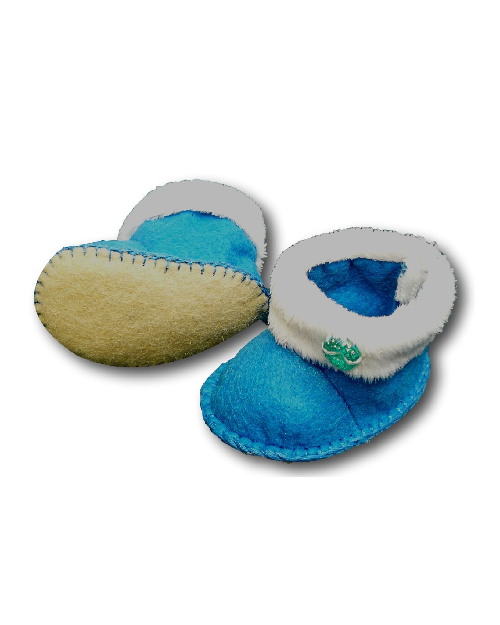 Сапожки сшиты из фетра различной толщины. Изготавливаются ограниченными партиями. По верху изделие оторочено искусственным мехом.Украшение - оригинальная пластиковая фурнитура. Обратите особое внимание на размер !!!! Длина подметки 70 мм , ширина подметки 45 мм.