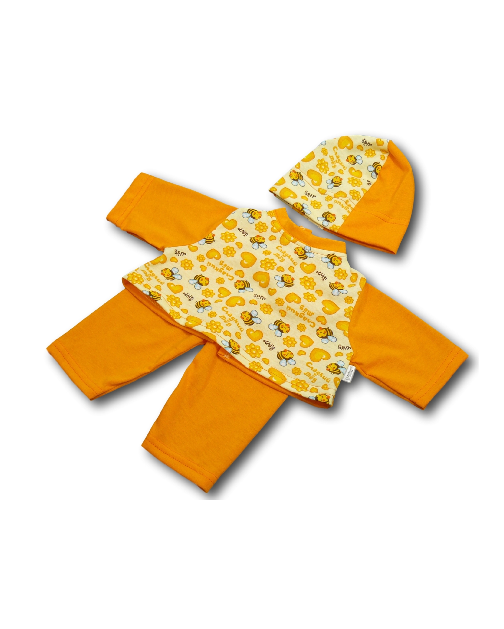 Комплект состоит из трех предметов: футболка, штаны и шапка.